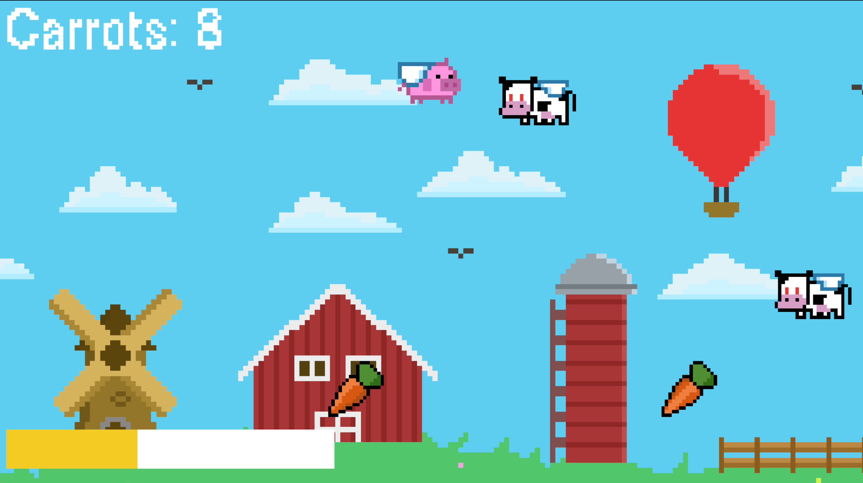 Download the zip file and unzip it. Inside is the WhenPigsFly!.exe file! Execute it to play the game.